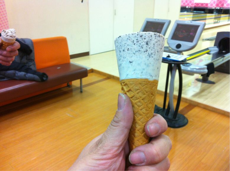 4ゲーム投げてから2ゲームのアイスマッチ。やっと2人揃って178にアイス奢ってもらいました!